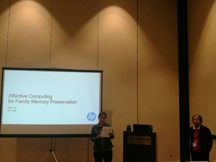 本次大会,邹月娴教授为“2nd International workshop on Affective Social Multimedia Computing”主持了林茜(Qian Lin)博士的Keynote“Affective Computing for Family Memory Preservation”,并与到会的微软首席科学家Li Deng等进行了深度交流并合影留念。