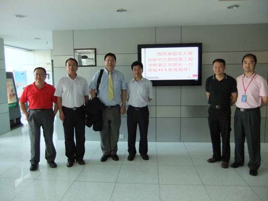 8月27日,信息工程学院副院长张盛东教授、深研院科研处处长刘宏教授、朱跃生教授、赵勇教授一行访问TCL集团工业研究院,与TCL副总裁及工业研究院院长闫晓林博士、 朱昌昌总工程师、付东主任、舒卫平经理就新一代电视机及数字家庭网络关键技术开展了深入的研讨,并签订了新一代电视机关键技术产学研合作协议。