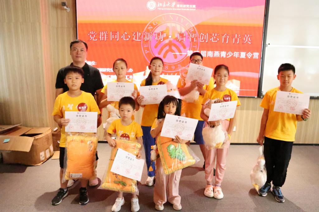 2025年7月15日,为期四天的“党群同心建新功,‘启智创芯’育青英——第三届南燕青少年信息科技夏令营”在北京大学深圳研究生院C203教室圆满落幕。北京大学深圳研究生院院长办公室主任、院长助理陈娇娇,信息工程学院院长杨玉超,信息工程学院副院长、教工党支部书记李倩等领导嘉宾莅临现场,一同见证50名小营员成长与收获的高光时刻。